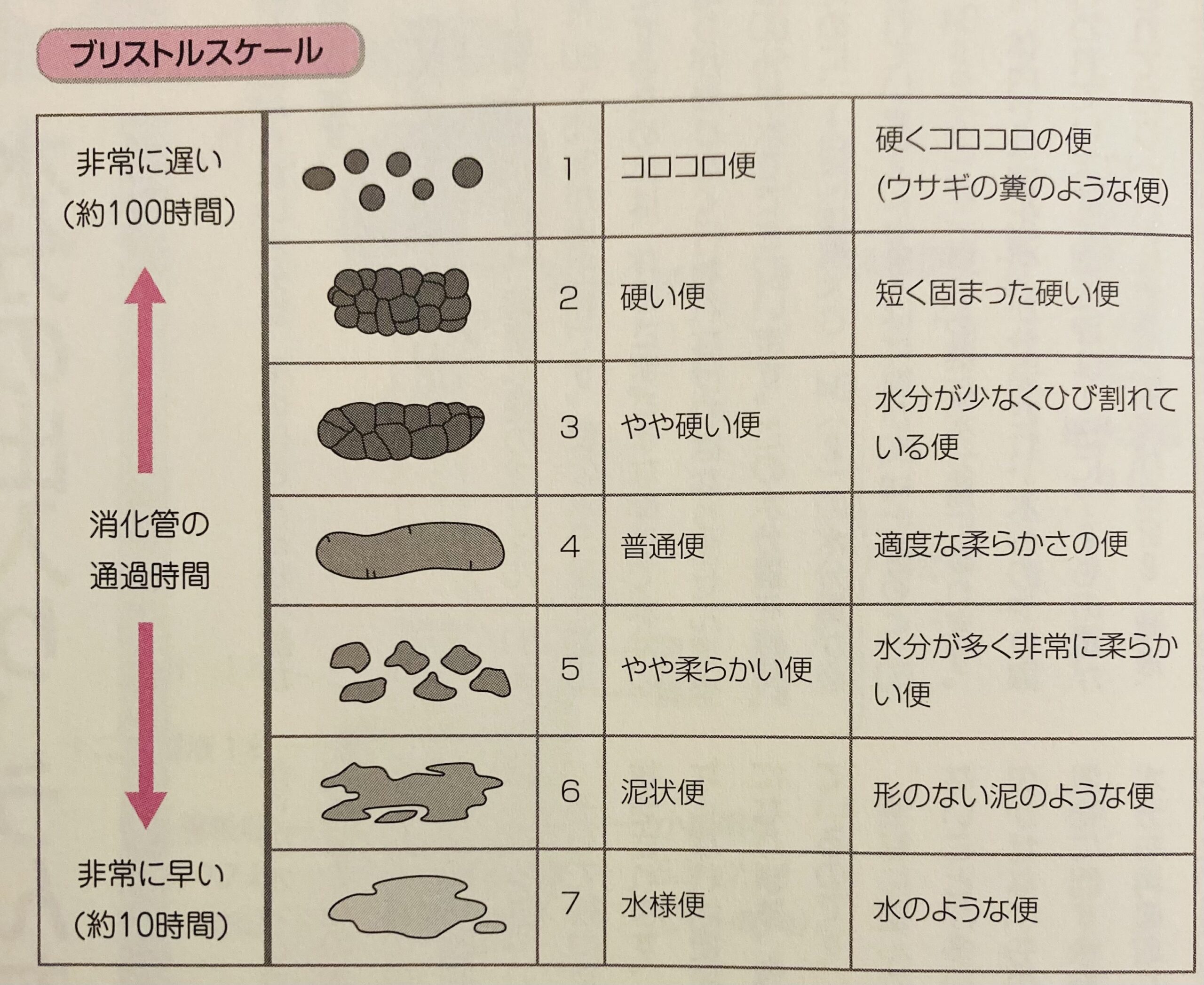 硬い便は1に近く、水っぽい便は7に近くなります。