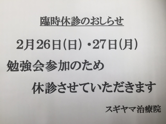 この2日間は休診となりますが必ずや皆様の利益につながるようにがんばりますのでよろしくお願いします。